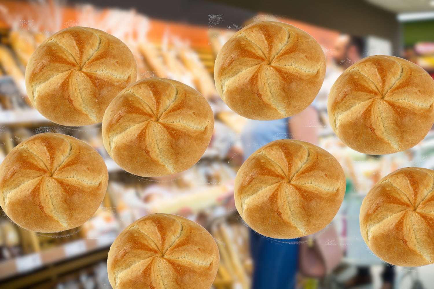 A zwłaszcza siedem bułek, które się zeschną, zmarnują i zostaną wyrzucone, oraz tę jedną, którą zjedzą. Oto one.