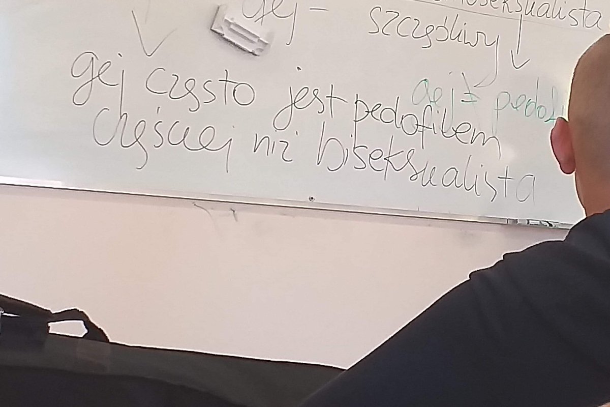 Robert Biedroń opublikował wideo, które otrzymał od swojego fana. Widać na nim fragment lekcji i nauczycielkę, ponoć katechetkę, która na tablicy wypisuje swoje przekonania o homoseksualistach.