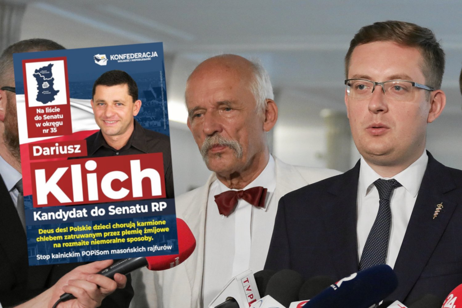 Brawurowy start kampanii wyborczej Konfederacji. Partia Korwina, Winnickiego i Brauna chce rozpocząć w Polsce debatę o tym, jak "polskie dzieci chorują karmione chlebem zatruwanym przez plemię żmijowe na rozmaite niemoralne sposoby". To wszystko z pomocą khazarskich rajfurów.