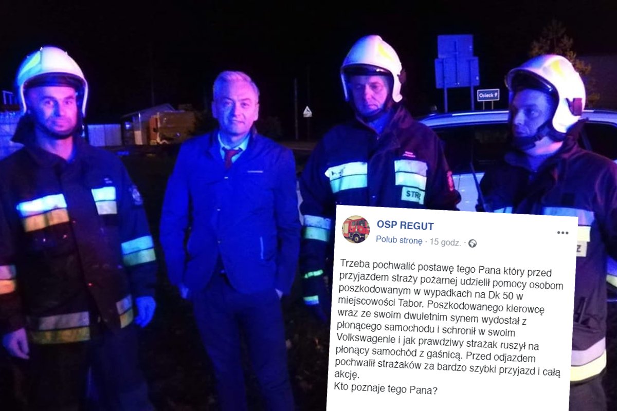W poniedziałek wieczorem na Facebooku OSP REGUT pojawił się wpis o wypadku samochodowym w miejscowości Tabor. Świadkiem wypadku miał też być Robert Biedroń, który według relacji strażaków, wydostał z płonącego auta kierowcę i jego 2-letniego syna. Ale tylko my wiemy, jak było naprawdę.