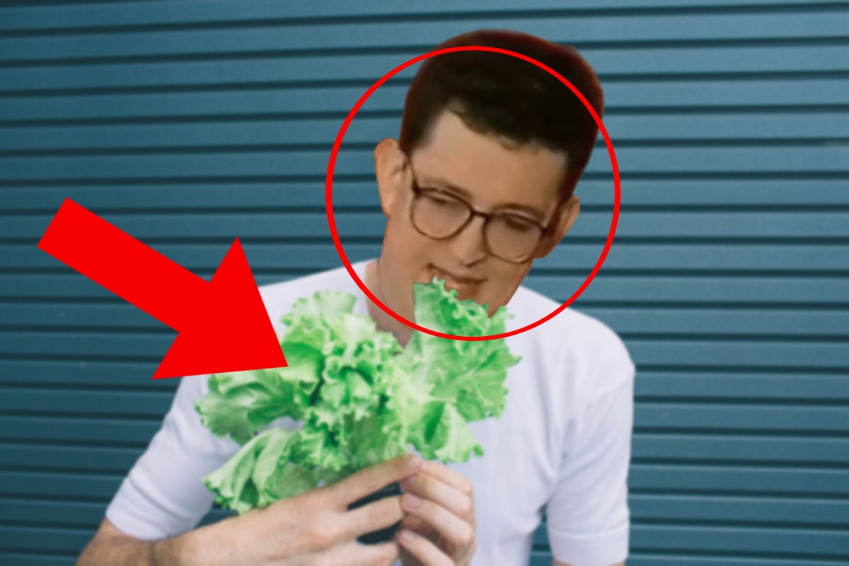 Na zdjęciu widzimy młodego, szczuplejszego Ziemkiewicza, który pakuje do ust... liście sałaty!