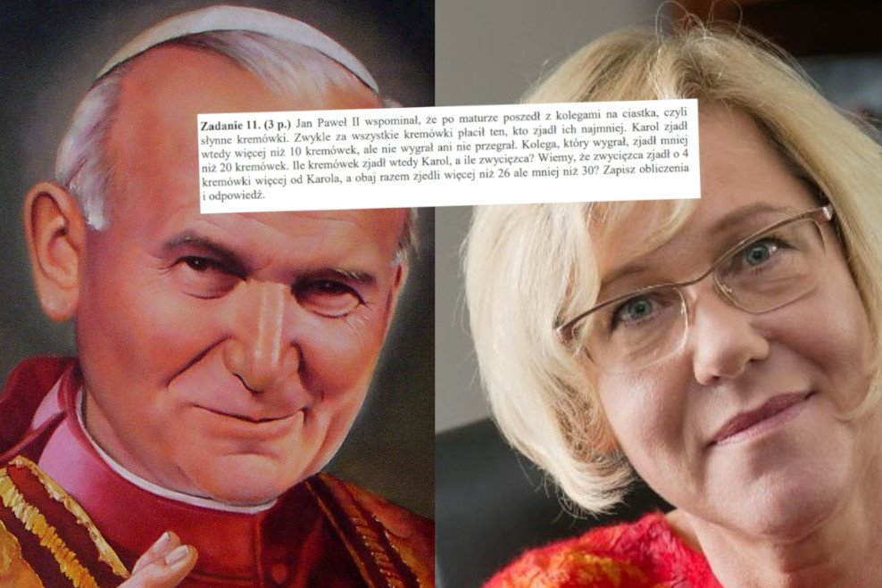 W Małopolsce pod patronatem znanej kurator oświaty Barbary Nowak zorganizowano konkurs matematyczny dla klas IV - VI. Zamiast na gruszkach i jabłuszkach, uczniowie liczyli na papieżu, bo tematem konkursu matematycznego był Rok Świętego Jana Pawła II. Oto prawdziwych zadań, które musieli rozwiązać uczniowie.