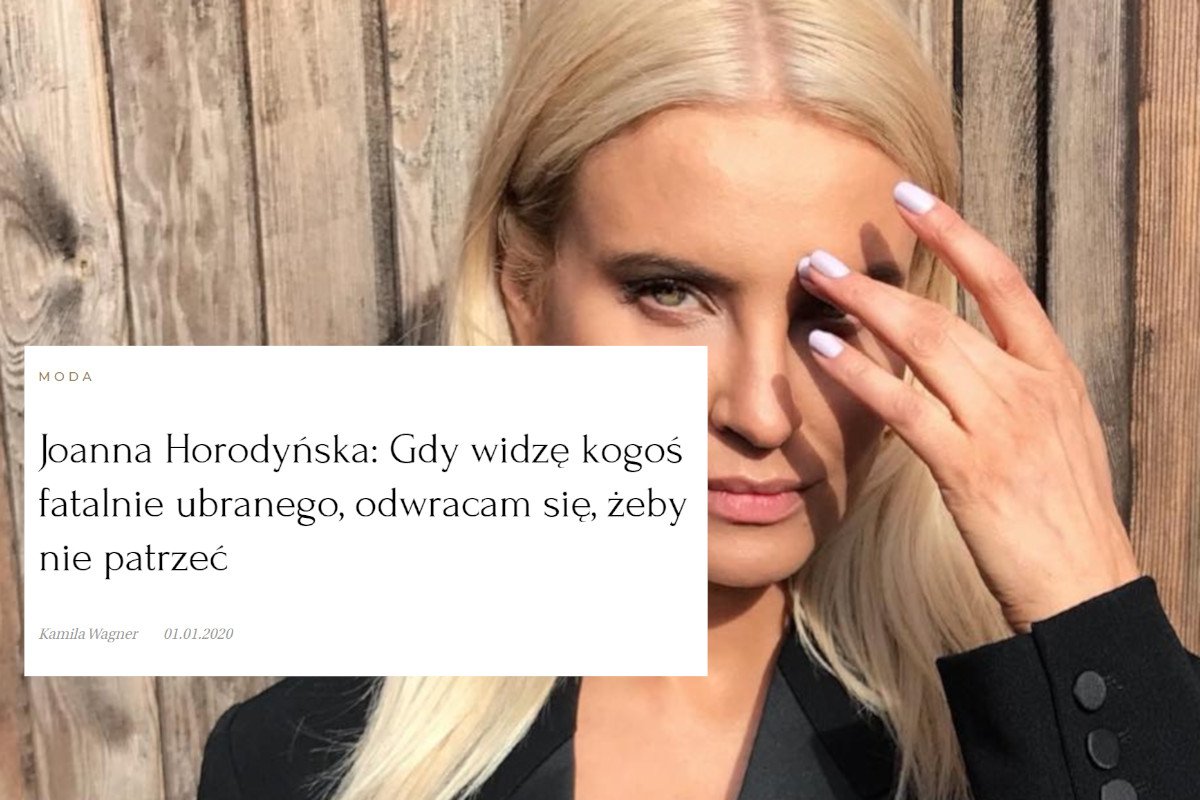 - Ja tym żyję. Gdy widzę kogoś fatalnie ubranego, to odwracam się, żeby nie patrzeć. Boli mnie ten widok - zdradziła Joanna Horodyńska "Wysokim Obcasom".