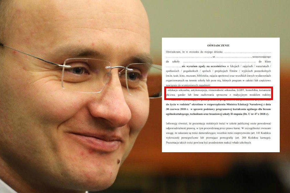 Wzór o wypisanie dziecka z lekcji na temat homofobii i szacunku dla osób LGBT zamieszczony został między wzorem wniosku o uczestnictwo w wycieczce szkolnej a wzorem zgody na przetwarzanie danych osobowych w szkołach. Bo wiecie, dwudniowa wycieczka IIC do Kazimierza Dolnego to problem tak duży, jak homofobia.