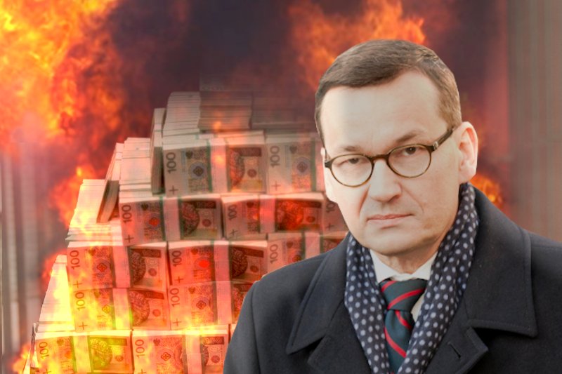 Szokujące widowisko miało dziś miejsce pod Sejmem. Premier Mateusz Morawiecki ułożył na chodniku gigantyczny stos gotówki, a następnie podłożył pod niego ogień. Spalił w ten sposób dwa miliardy złotych.