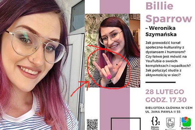 Youtuberka Weronika Szymańska znana (lub nie) jako Billie Sparrow zapraszała z plakatu na swoje spotkanie w Piasecznie. Radni PiS dopatrzyli się na nim symbolu ku czci Szatana, Księcia Ciemności, Gwiazdy Zarannej, Pana Zniszczenia, Ojca Kłamstwa, Syna Zatracenia. A to było tylko "I love you" w języku migowym".