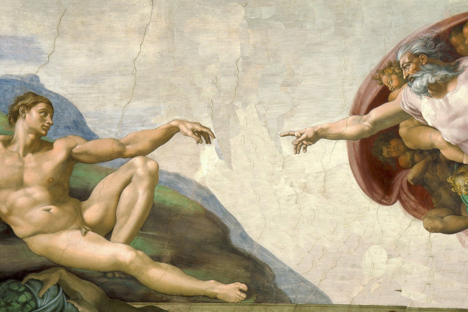 Zdrowy rozsądek przede wszystkim. Zalecenia WHO poważnie potraktowano na terenie Kaplicy Sykstyńskiej w Watykanie. Pan Bóg odsunął trochę swoją dłoń od dłoni Adama. Ma nadzieję, że mężczyzna nie potraktuje tego jako osobistego przytyku.