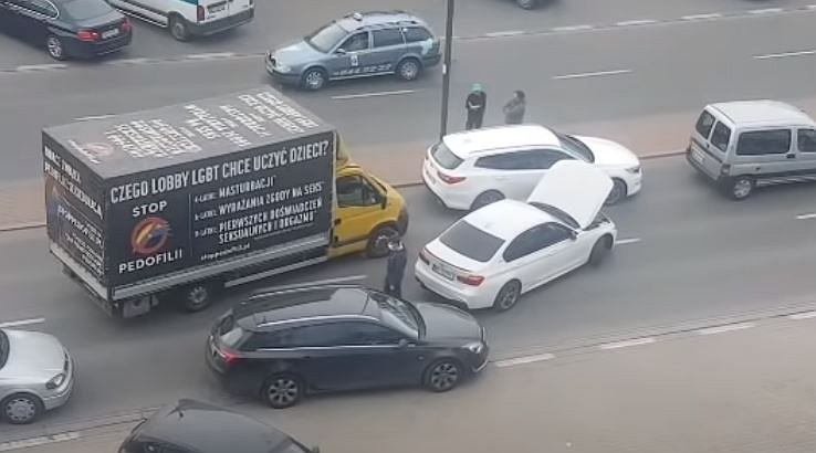 W sobotę ciężarówka fundacji Pro - Prawo Do Życia jeździła sobie po warszawskim Ursynowie, głosząc homofobiczne hasła. Byłoby przykro, gdyby ktoś ją zablokował... Ojej, właśnie tak się stało.