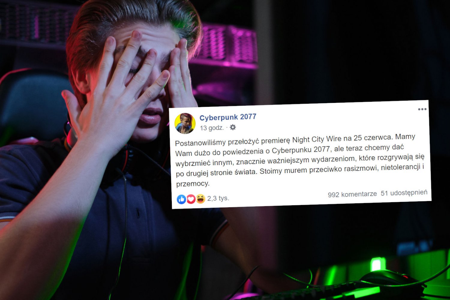 CD Projekt RED przełożył premierę pokazu Cyberpunka 2077 z powodu sytuacji w Stanach Zjednoczonych. Dla grupy hardcorowych graczy z Polski to było zbyt wiele. Postanowili dać wyraz swojej krzywdzie: przez pokaz rasizmu, nienawiści i whataboutismu. Za przebrnięcie przez sekcję komentarzy powinien być jakiś achievement.