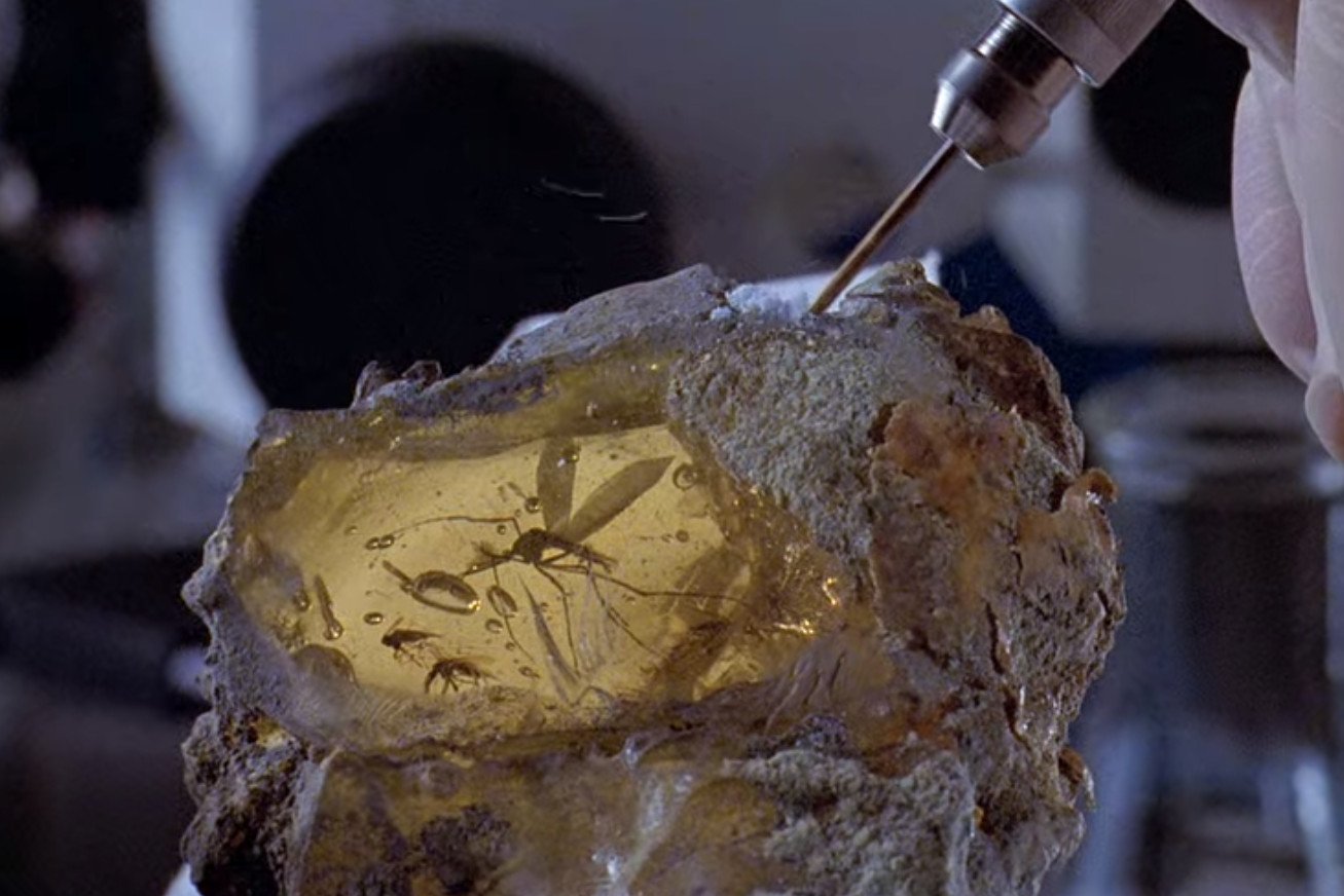 - Czasem najedzony krwią komar przysiada na krawędzi drzewa i wpada w krople żywicy - tłumaczy biolog. - Żywica twardnieje, aż wreszcie staje się bryłką bursztynu z komarem i kroplą krwi z DNA gotowym do odbudowy gatunku.