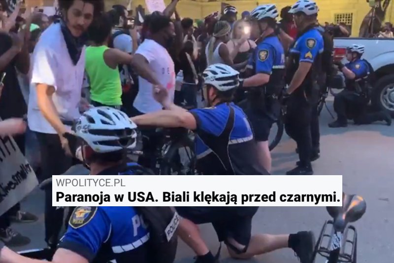 - Paranoja w Stanach Zjednoczonych. Biali klękają przed czarnymi i całują ich po butach. Absurd dotarł do Europy - napisali dziennikarze prawicowego portalu na Facebooku.