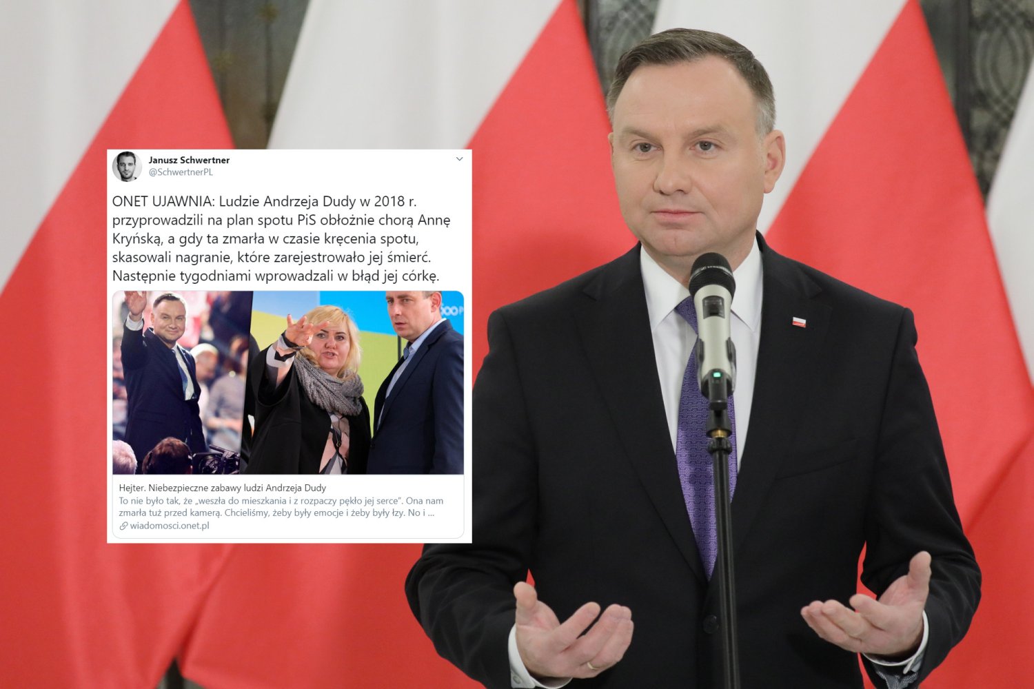 Anna Kryńska to ofiara reprywatyzacji, którą PR-owcy namówili do kręcenia spotu wyborczego Patryka Jakiego. Pomysłodawcami spotu mieli być obecni współtwórcy kampanii Andrzeja Dudy - czytamy w Onecie.