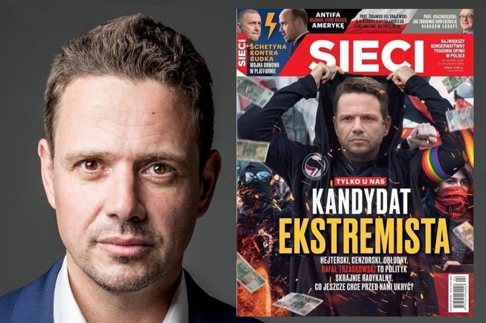 Kandydat-ekstremista - głosi zatrważająca okładka dzisiejszych "Sieci" przedstawiająca Rafała Trzaskowskiego z symbolem Antify na jednym ramieniu i tęczową flagą na drugim. To widoczny znak dwóch rzeczy: że Trzaskowski szybko odrabia w prezydenckich sondażach dystans dzielący go z Dudą oraz że polska szkoła okładki prasowej nadal w doskonałej formie.
