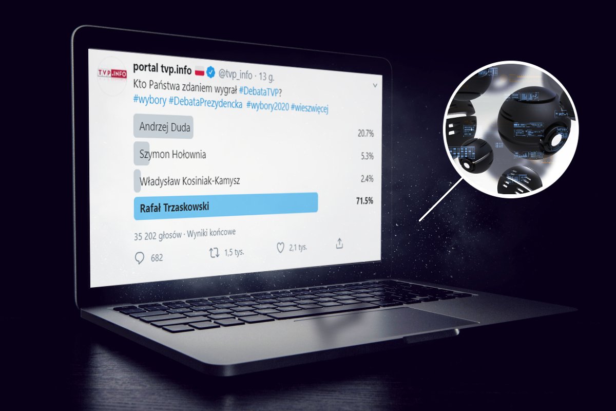 Portal tvp.info stworzył sondę z pytaniem o zwycięstwo w debacie prezydenckiej. Kiedy wyraźną przewagą zyskał Rafał Trzaskowski, TVP ogłosiła, że sonda padła ofiarą ataku. Wynik miał zostać zmanipulowany przez 600 milionów nanobotów, które zaatakowały komputery na Woronicza.