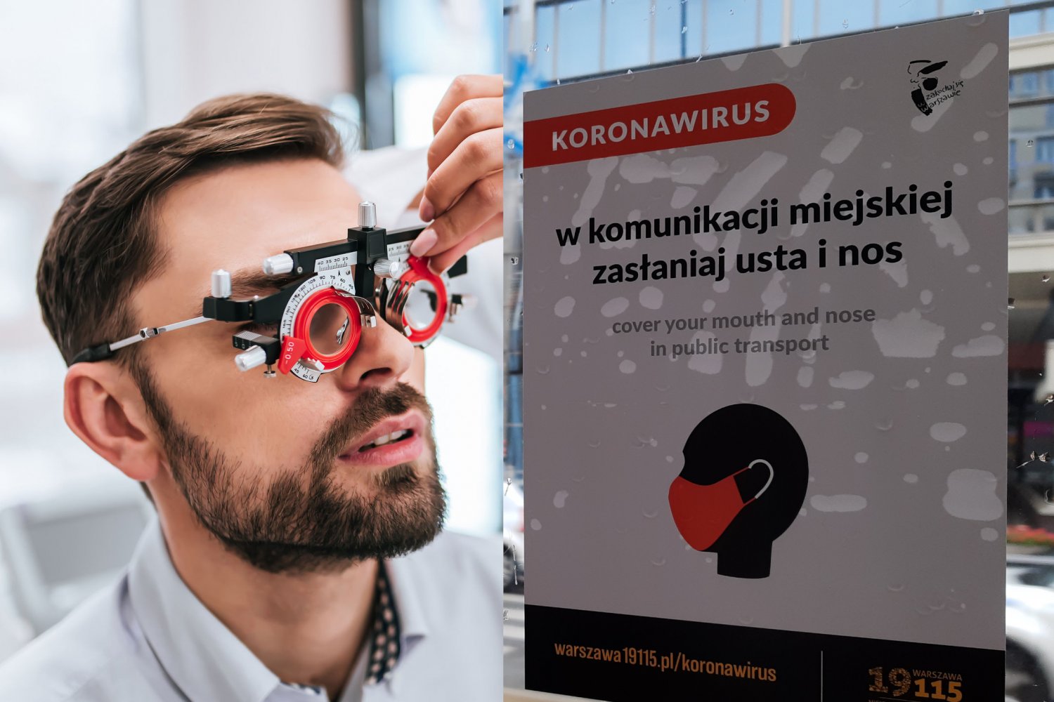 Kolejna plaga? Masowe przypadki uszkodzenia wzroku notują okuliści z całego kraju. Polacy najwyraźniej nie potrafią rozczytać nawet wielkiego, czarnego napisu "W KOMUNIKACJI MIEJSKIEJ ZASŁANIAJ USTA I NOS" na białym tle, rozwieszonego w widocznym i dobrze oświetlonym miejscu.