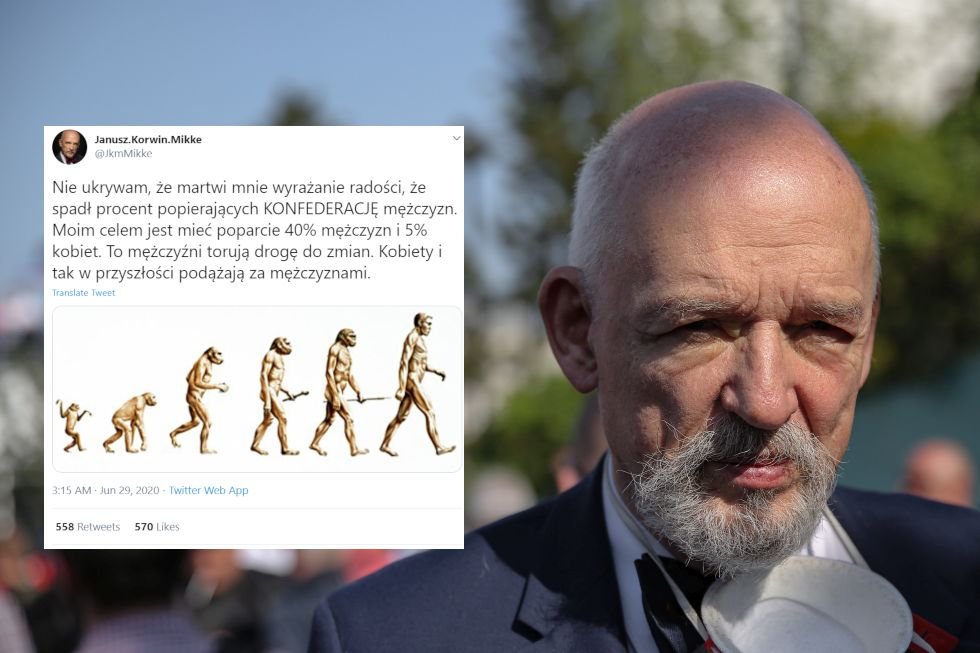 Dawno nie popisał się niczym spektakularnym, ale już powrócił w wielkim stylu. Poseł Konfederacji Janusz Korwin-Mikke dokonał na Twitterze eleganckiej analizy tego, kto głosuje na jego partię. I wyszło mu, że niestety za dużo kobiet.