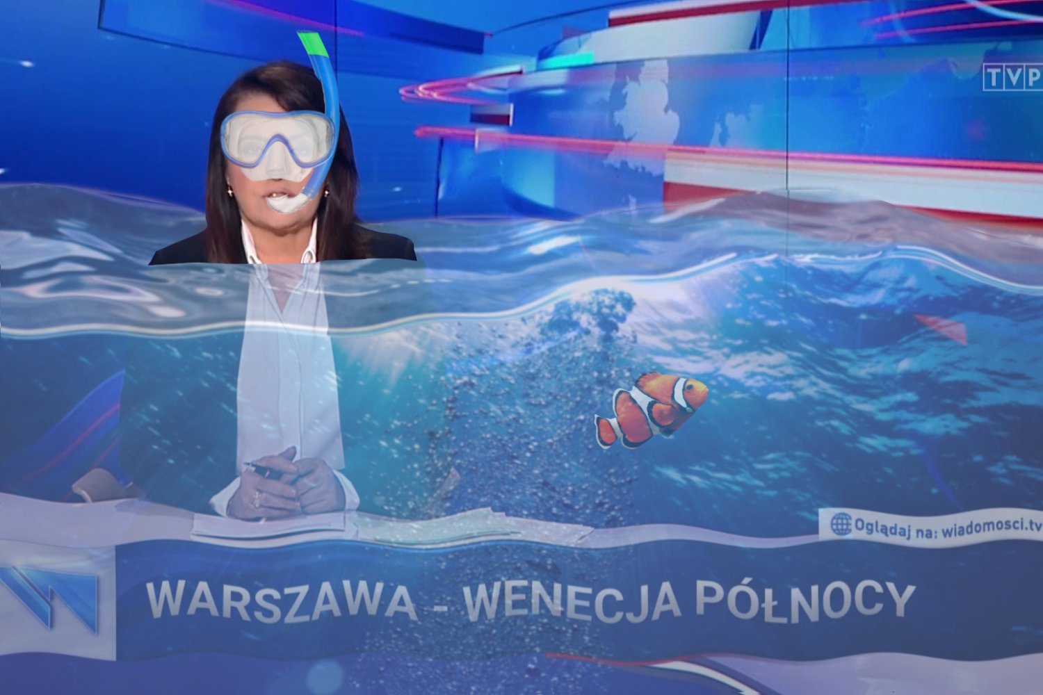 Danuta Holecka w asyście ośmiu płetwonurków z Marynarki Wojennej RP poprowadzi specjalne wydanie Wiadomości poświęcone sytuacji w Warszawie po opadach deszczu - poinformowało biuro prasowe Telewizji Polskiej.