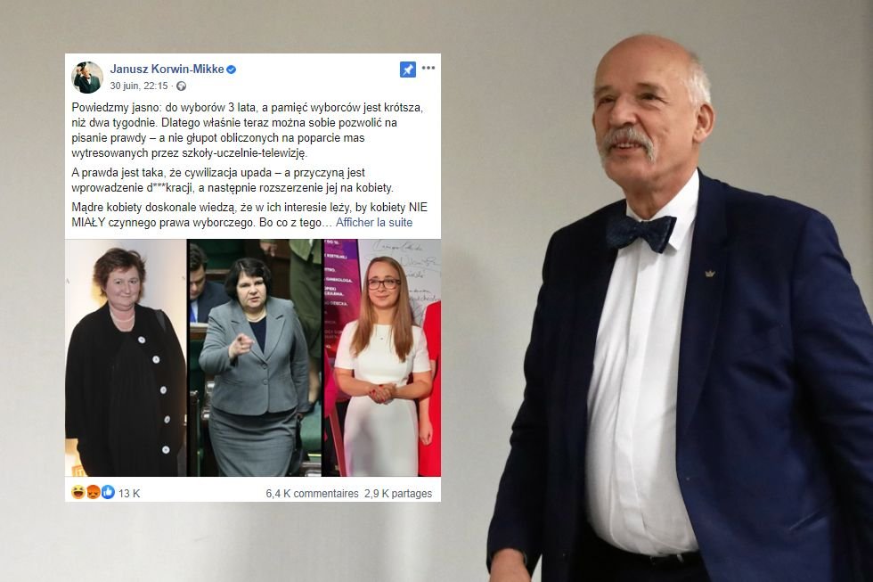 Janusz Korwin-Mikke wyraźnie na fali wznoszącej. Po tekście o tym, że za dużo kobiet głosuje na Konfederację, wymyślił, jak raz na zawsze rozwiązać ten problem. Otóż według pana Janusza najlepiej by było, gdyby kobietom po prostu zabrać prawa wyborcze.