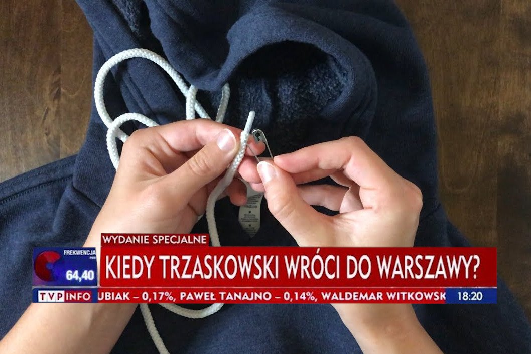 Gdy ten sam sznurek od tej samej bluzy wypadł mi podczas kampanii prezydenckiej w 2018 roku, Patryk Jaki bez wahania przyszedł do mnie z agrafką i jakimś drucikiem, coś tam wsunął, za coś pociągnął, i nie minęła nawet minuta, a mogłem cieszyć się swoją bluzą i miłym ciepłem w chłodne wieczory.