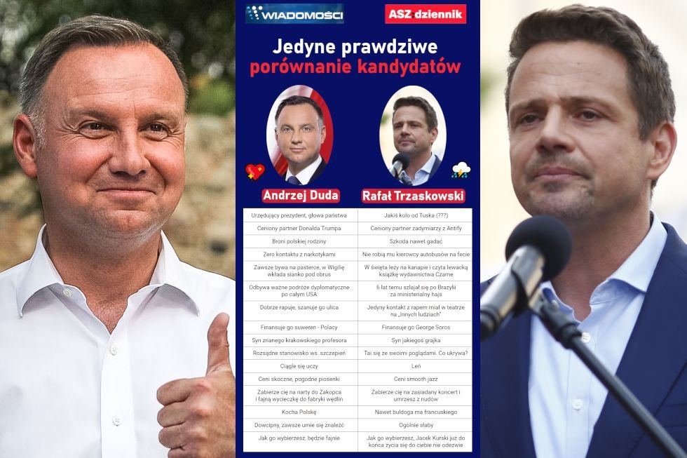 Specjalnie dla was opracowaliśmy jedyne prawdziwe porównanie kandydatów na podstawie tego, czego można się o nich dowiedzieć w TVP.