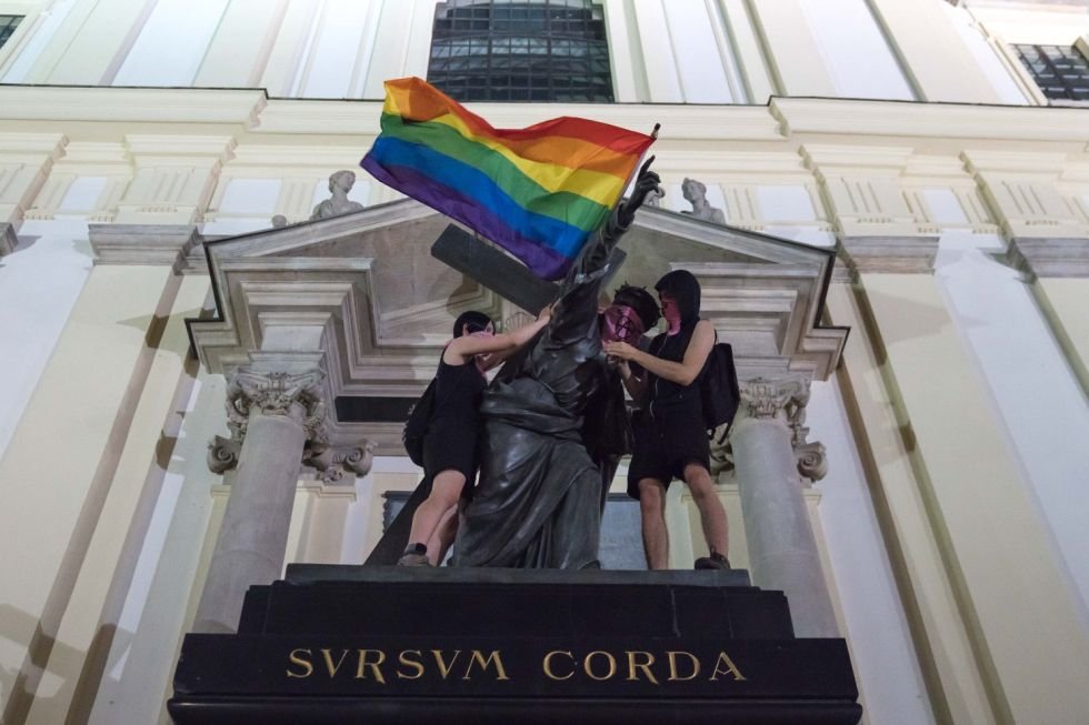 Jak alarmuje tygodnik "Do Rzeczy", ostatniej nocy "działacze LGBT dokonali profanacji figury Jezusa Chrystusa". Chodzi o pomnik przed warszawskim Kościołem Św. Krzyża, któremu - podobnie jak kilku innym stołecznym monumentom - aktywiści podarowali tęczową flagę. Pomnik nie został osprejowany, zniszczony, zdekapitowany, zrzucony z postumentu ani w ogóle nie zaszła w nim żadna trwała zmiana.