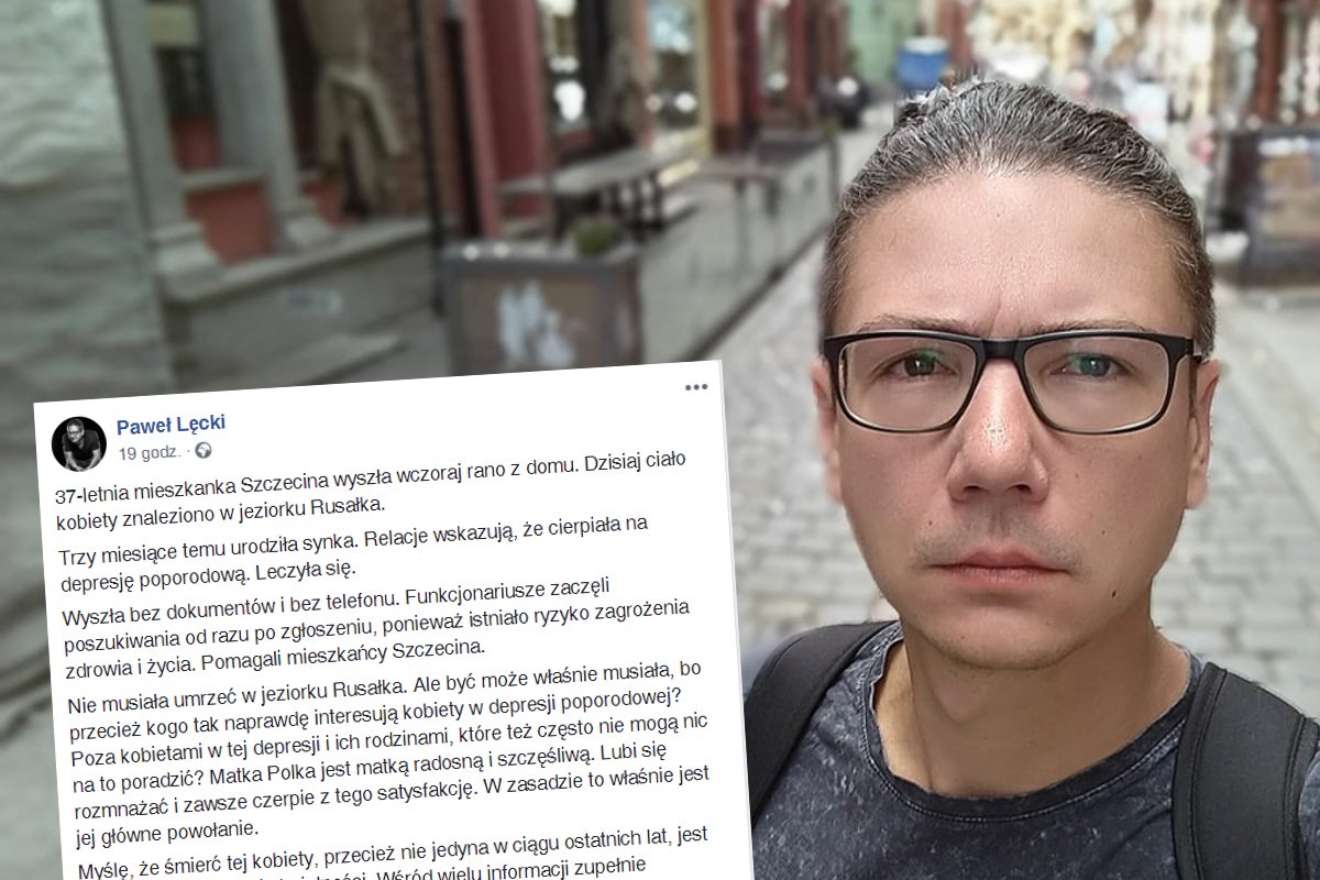 Lęcki opisał tragiczną historię 37-latki ze Szczecina, której ciało zostało odnalezione w jeziorku Rusałka. Kobieta cierpiała na depresję poporodową i, mimo tego, że sama była terapeutką nie otrzymała na czas wystarczającej pomocy.