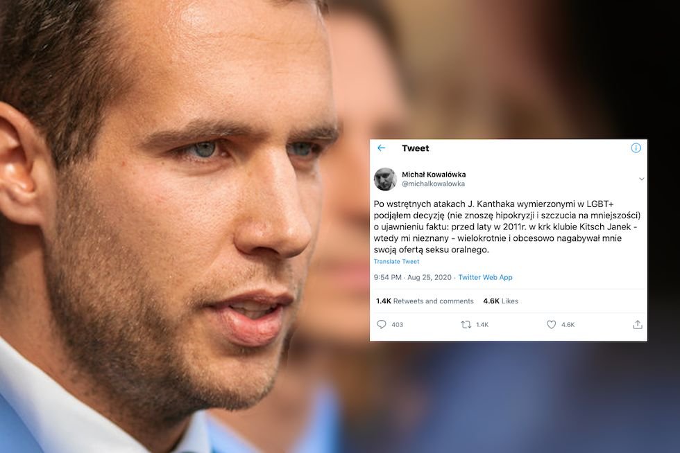 "Po wstrętnych atakach J. Kanthaka wymierzonymi w LGBT+ podjąłem decyzję (nie znoszę hipokryzji i szczucia na mniejszości) o ujawnieniu faktu: przed laty w 2011r. w krakowskim klubie Kitsch Janek - wtedy mi nieznany - wielokrotnie i obcesowo nagabywał mnie swoją ofertą seksu oralnego" - napisał Kowalówka. Jak sprecyzował w kolejnym tweecie, chodziło konkretnie o dictum "Obciągnąłbym ci".