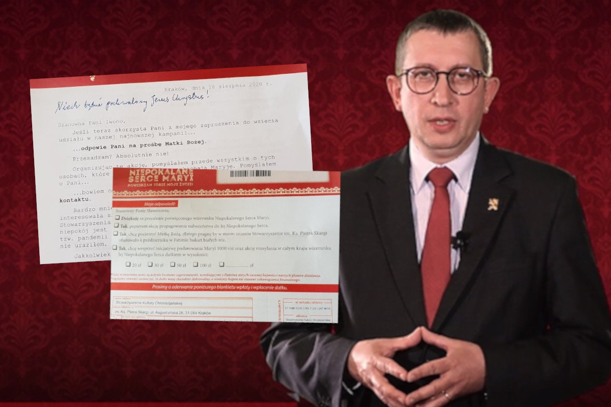 "Matka Boża zapowiedziała (...) zbawienie każdemu, kto będzie rozpowszechniał nabożeństwo". Dlatego proszę wpłacić pieniądze na nasze konto. Tak można streścić list, który do seniorów w całej Polsce rozsyła Stowarzyszenie Kultury Chrześcijańskiej im. księdza Piotra Skargi. To związana z Ordo Iuris organizacja, której prezes sugeruje, że działa w imieniu Matki Boskiej.