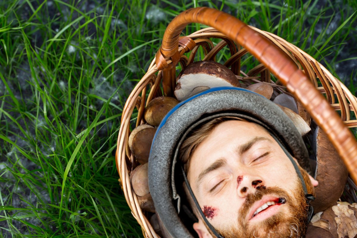 56-letni fan grzybobrania od rana samotnie chodził po lesie. Koło godziny 13:00 wypatrzył pod drzewem coś, co wziął za dorodny okaz koźlarza. Zaczął mocować się z "grzybem", aż w końcu pomógł sobie nożem.