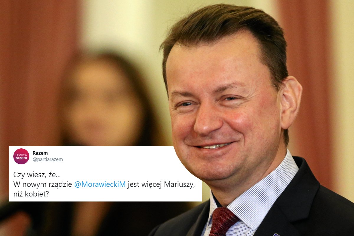 Partia Razem zauważyła na Twitterze, że w rządzie po rekonstrukcji będzie więcej Mariuszów (Błaszczak i Kamiński) niż kobiet (Marlena Maląg).
