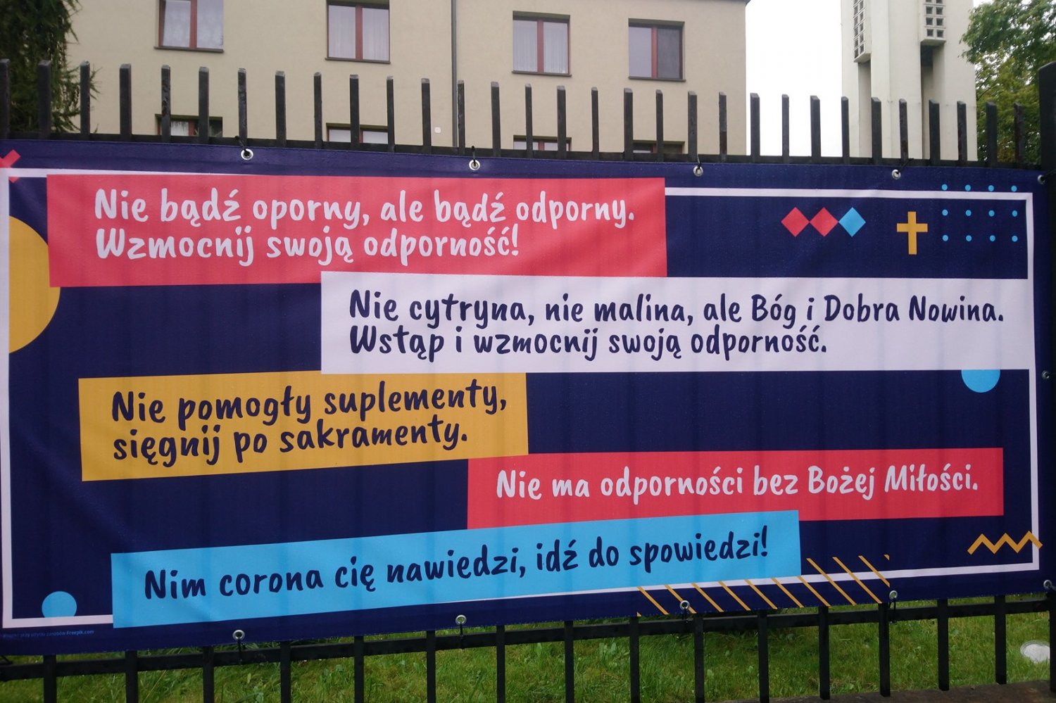 Jedna z parafii w Katowicach uznała, że nic tak nie wzmacnia odporności na koronawirusa jak msza święta i modlitwa. "Nie cytryna, nie malina, ale Bóg i Dobra Nowina" - można przeczytać na jednym z plakatów, którym proboszcz promuje msze. Postanowiliśmy pomóc katowickim księżom, by 2 tysiące zachorowań dziennie nie wpłynęło na niedzielną frekwencję.