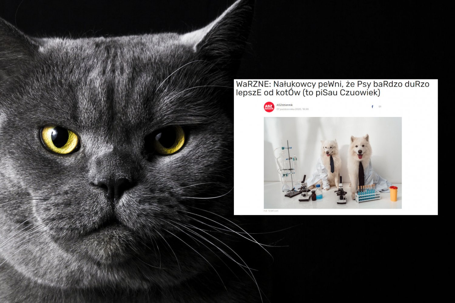 W związku z haniebnym i nierzetelnym artykułem zatytułowanym "WaRZNE: Nałukowcy peWni, że Psy baRdzo duRzo lepszE od kotÓw (to piSau Czuowiek)" opublikowanym w serwisie ASZdziennik.pl, żądamy pilnego sprostowania zawartych w nim kłamstw na temat Pań Kocic i Panów Kotów.