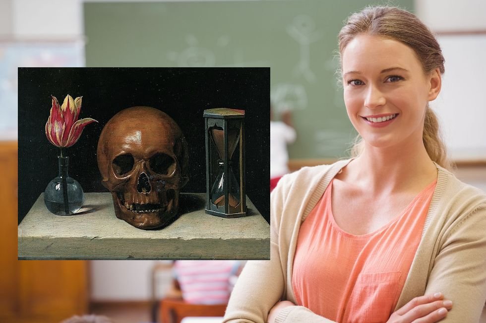 Tyś na twarz suknem żałobnym nakryty / Jam zawarł zmysły w okropnej ciemności - recytowali wspólnie uczniowie i uczennice, odnosząc się zapewne do chwili, gdy któreś z nich zarazi ukochaną nauczycielkę koronawirusem, a potem wszyscy będą ze smutkiem żegnać jej martwe ciało na katafalku.