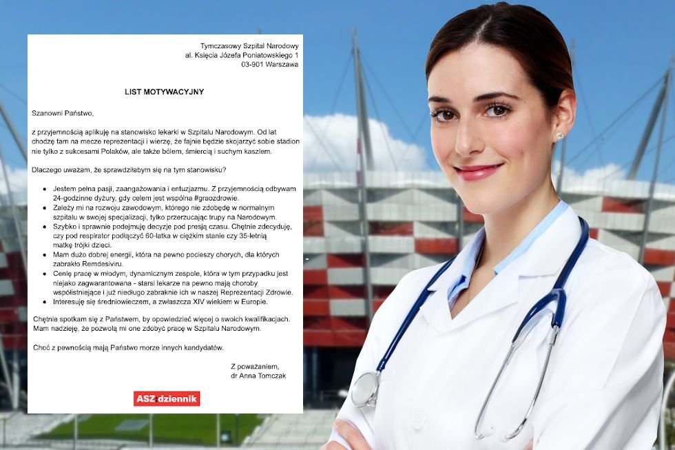 To jest ASZdziennik. List motywacyjny został zmyślony, ale strona Szpitala Narodowego - nie.
