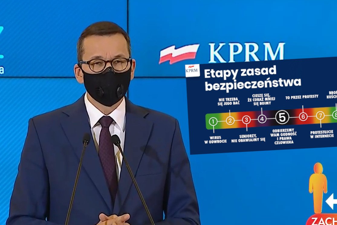 Mateusz Morawiecki ogłaszając zasady bezpieczeństwa zwalił winę za wzrost zachorowań na Polki, które zostały zmuszone do wyjścia na ulice w czasie epidemii. Dlatego postanowiliśmy poprawić mu etapy zasad bezpieczeństwa, które sam wprowadził. Teraz powinny zgadzać się ze stanem faktycznym.