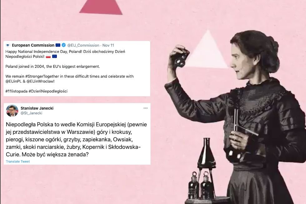 Z okazji Dnia Niepodległości Komisja Europejska opublikowała na swoim Twitterze krótkie, sympatyczne wideo o Polsce. Film - utrzymany w tej samej estetyce, co podobne o innych krajach - zawiera postacie Marii Skłodowskiej-Curie, Mikołaja Kopernika czy Adama Małysza, zabytkowe zamki, żubra, a także z gruntu polskie artefakty takie jak pierogi, ogórek kiszony i koszyk grzybów. Czy ktoś mógłby się o to pogniewać? Tak.