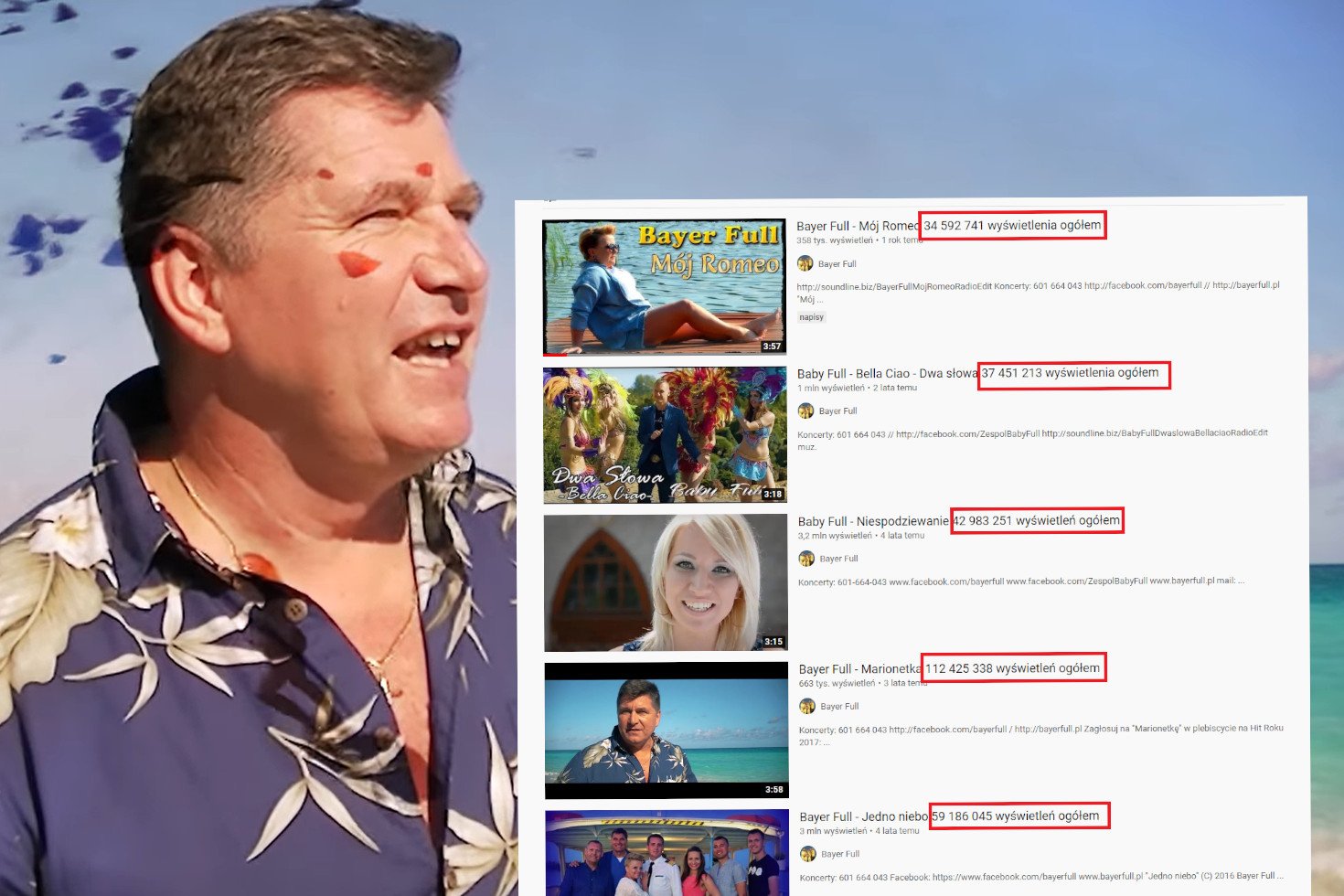Nie wiadomo, czy Bayer Full dodaje sobie odsłuchy z koncertów i wesel, czy uwzględnia tylko te, o których słyszał w internecie.