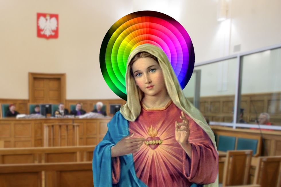 Do skandalicznego zachowania doszło w Sądzie Rejonowym w Płocku, gdzie właśnie rozpoczął się proces kobiet oskarżonych o obrazę uczuć religijnych. Pozwane odpowiedzą za to, że w 2019 r. przyklejały wokół kościoła nalepki przedstawiające tęczową Matkę Boską Częstochowską. Na świadka, zgodnie z najlepszą logiką, powołano samą Maryję.