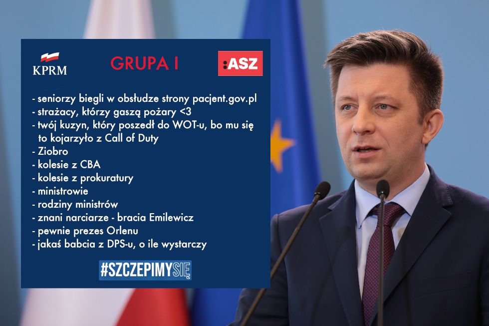 To jest ASZdziennik. Wszystkie nowe grupy zostały zmyślone, ale funkcjonariusze CBA naprawdę zaszczepią się razem z seniorami.