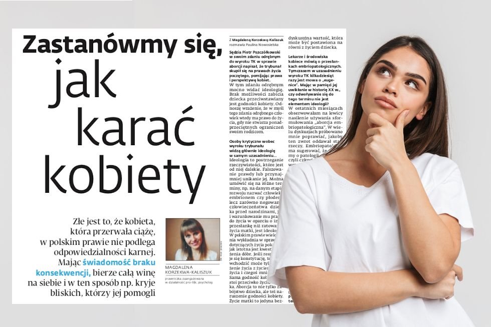 Ponieważ w Polsce kobiety nie są wystarczająco ukarane za bycie kobietami, należy ukarać je jeszcze bardziej - tyle właśnie wynika z wywiadu z Magdaleną Korzekwą-Kaliszuk, prawniczką, psycholożką i (tego nie piszą) znaną ekspertką TVP. Wywiad został opublikowany w Dzienniku Gazecie Prawnej pod niepozostawiającym złudzeń tytułem "Zastanówmy się, jak karać kobiety".