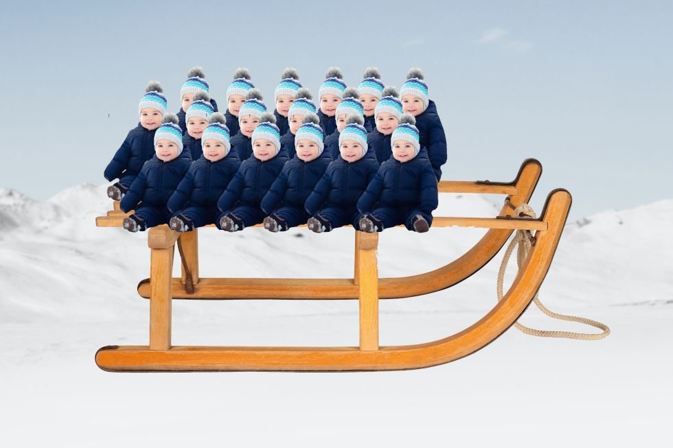 Zgodnie ze specyfikacją sanki XXL pomieszczą do 40 drobnych dzieci lub 20 szóstoklasistów.