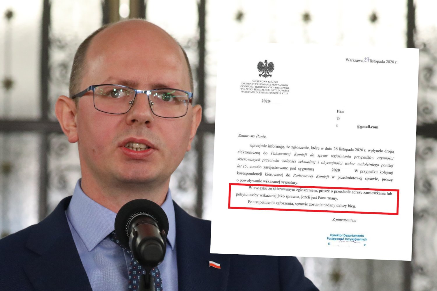 "Pan Tomasz, ofiara księdza pedofila, zgłosił wniosek do komisji w listopadzie. Komisja w odpowiedzi wysłała pismo, w którym uzależnia nadanie biegu sprawie od podania adresu zamieszkania sprawcy.