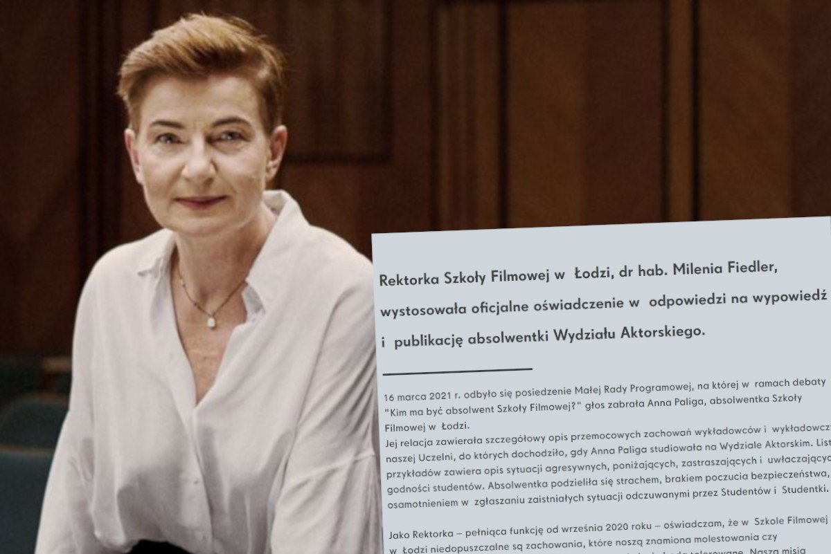 Aktorka Anna Paliga, absolwentka łódzkiej filmówki, opisała, co odwalało się w szkole na zajęciach ze studentami. Wykładowcy mieli np. bić studentki po twarzach, gryźć je po szyjach, wzywać od "pier*olonych ku*ew". Na jej relację odpowiedziała właśnie rektorka PWSFTviT, dr hab. Milenia Fiedler.