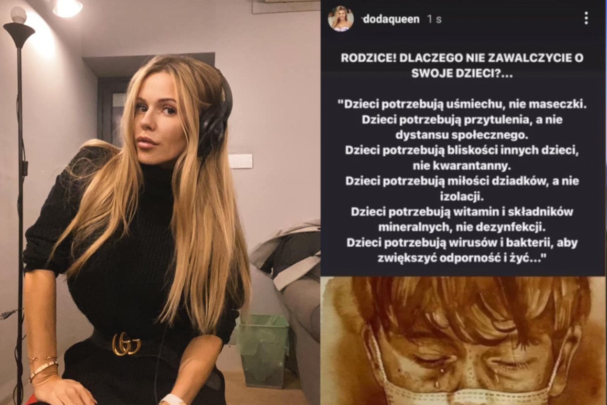 - Dzieci potrzebują uśmiechu, a nie maseczki. Dzieci potrzebują miłości dziadków, a nie izolacji - wylicza Doda na Instagramie.