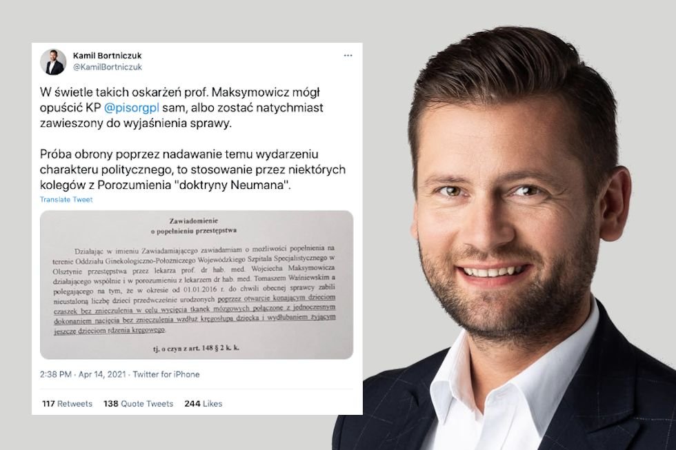 To jest ASZdziennik, ale tweet Bortniczuka nie został zmyślony. Dla porządku dodajemy, że prof. Maksymowicz oświadczył, że ani on, ani jego zespół "nie przeprowadzał eksperymentów na żywych płodach, ani na zwłokach pochodzących z aborcji".