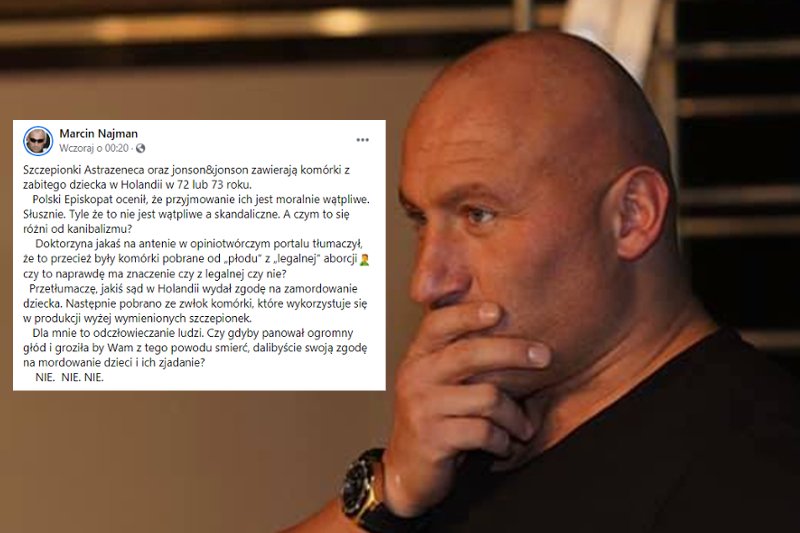 Marcin Najman, ekspert nie tylko od sportów sztuk walki czy amerykańskiego systemu wyborczego, ale też medycyny i biotechnologii, wypowiedział się na temat szczepionek AstraZeneca oraz Johnshon&Johnson. Według niego przyjmowanie tych preparatów nie różni się od kanibalizmu.