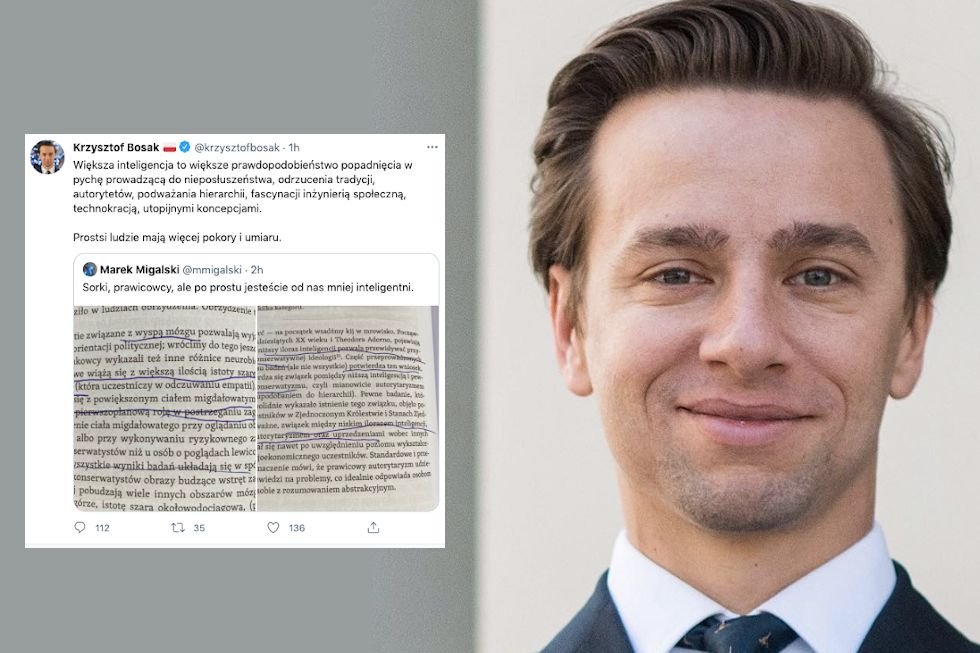 Bosak zamieścił ją w reakcji na tweet Marka Migalskiego, który podzielił się swoją ostatnią lekturą. Wyczytał w niej, że według części badań naukowych istnieje związek między niskim ilorazem inteligencji a prawicowymi poglądami i skłonnością do autorytaryzmu.