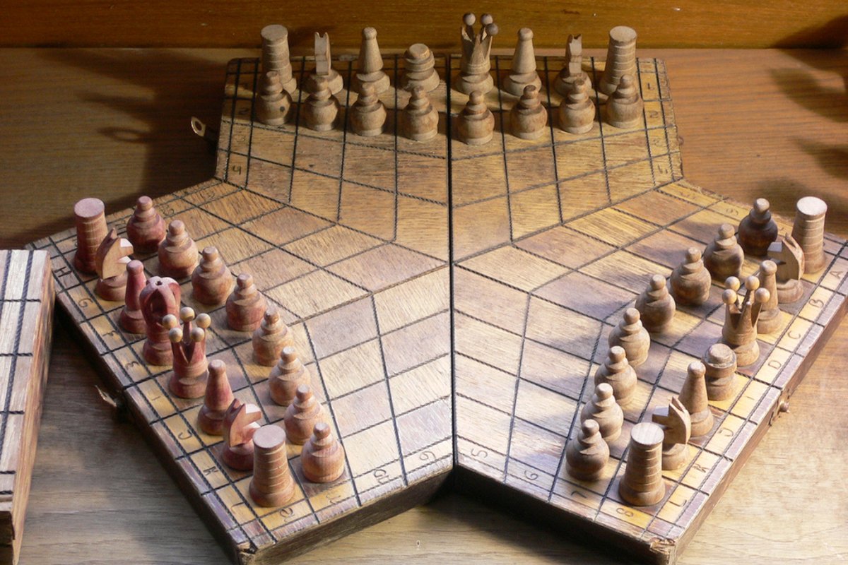 To jest dopiero geniusz: spojrzeć na szachy i pomyśleć "hmmm, czego tu brakuje? no tak, już wiem, możliwości gry trzeciej osoby!". Nad stworzeniem trzyosobowej szachownicy kombinowało sporo osób, bo widocznie ten jeden samotny nerd, który musi poczekać na swoją kolej, jak jest nieparzyście w kółku szachowym, był sporym problemem. Jeden z jej wariantów został stworzony przez krakowskiego naukowca (!) dr. Jacka Filka.