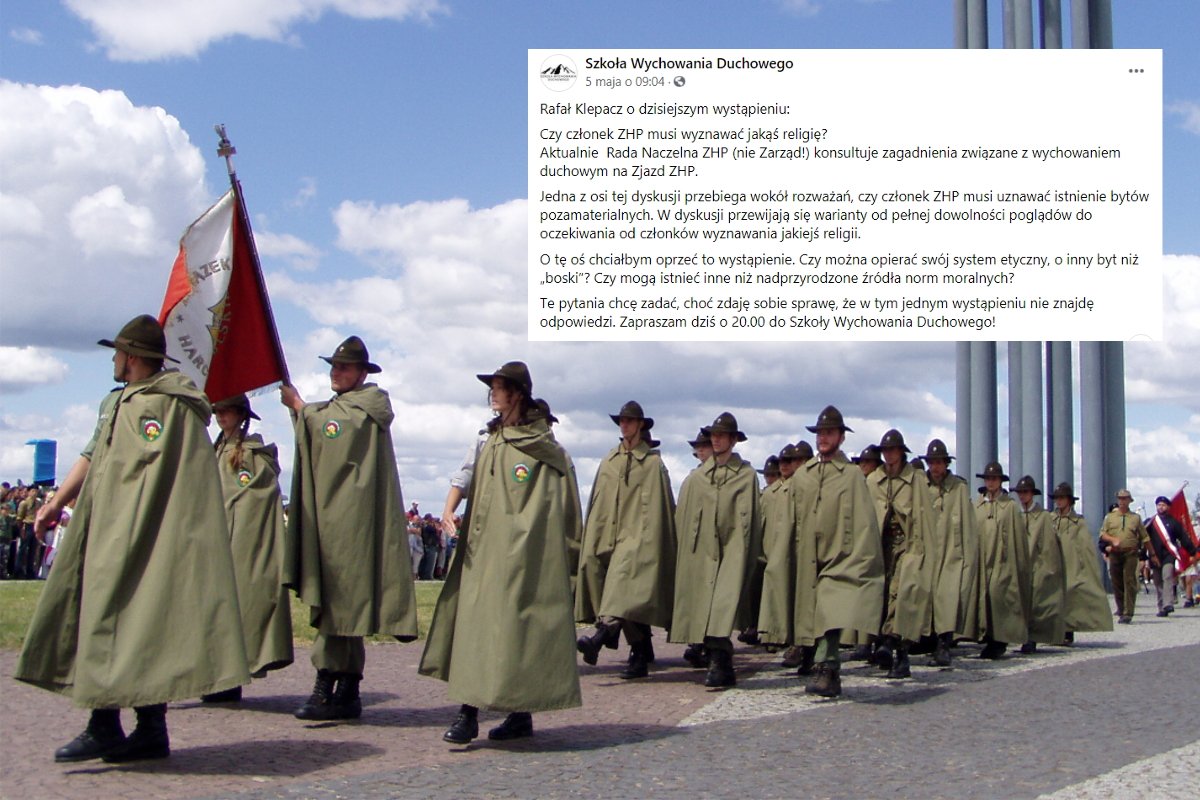 - Jedna z osi tej dyskusji przebiega wokół rozważań, czy członek ZHP musi uznawać istnienie bytów pozamaterialnych. W dyskusji przewijają się warianty od pełnej dowolności poglądów do oczekiwania od członków wyznawania jakiejś religii. (...) Czy można opierać swój system etyczny, o inny byt niż „boski”? Czy mogą istnieć inne niż nadprzyrodzone źródła norm moralnych? - fanpage cytuje Rafała Klepacza, socjologa i instruktora harcerskiego ZHP.