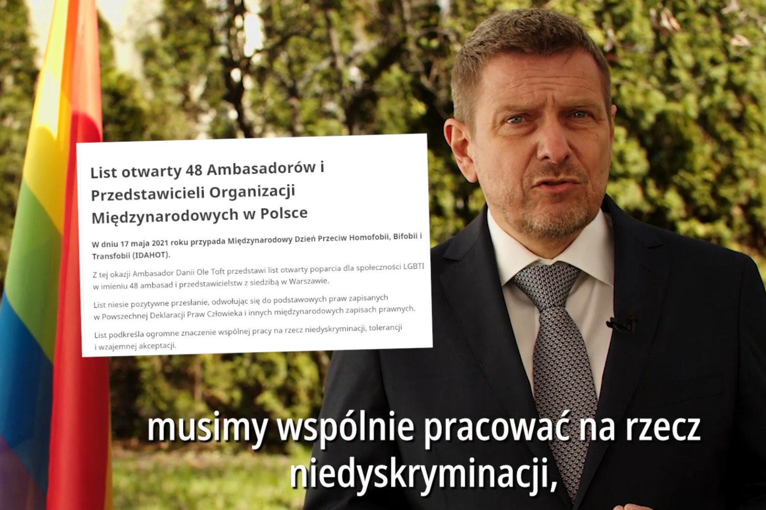 Dziś Międzynarodowy Dzień Przeciw Homofobii, Bifobii i Transfobii. Z tej okazji przedstawiciele 48 ambasad oraz instytucji międzynarodowych podpisali się pod listem w sprawie sytuacji osób LGBT+ w Polsce. Kluczowe przesłanie listu brzmi: "Prawa człowieka są uniwersalne i wszyscy, w tym osoby LGBT+, mają prawo w pełni z nich korzystać".